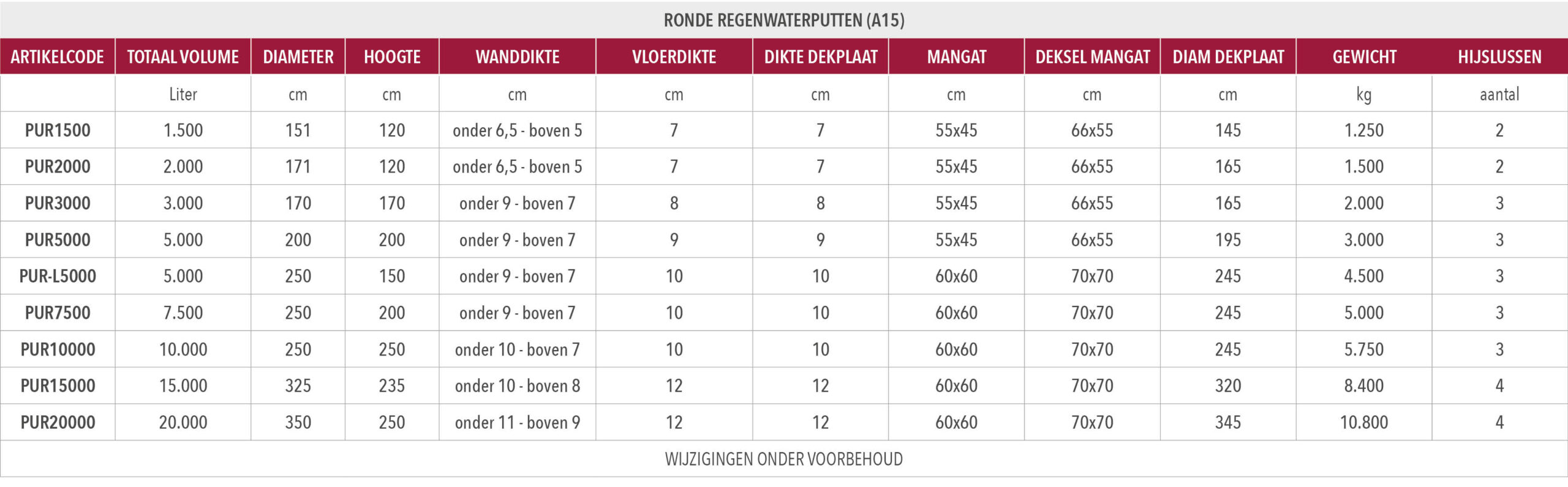De regenwaterputten zijn waterdicht tot onder het niveau van de dekplaat.
